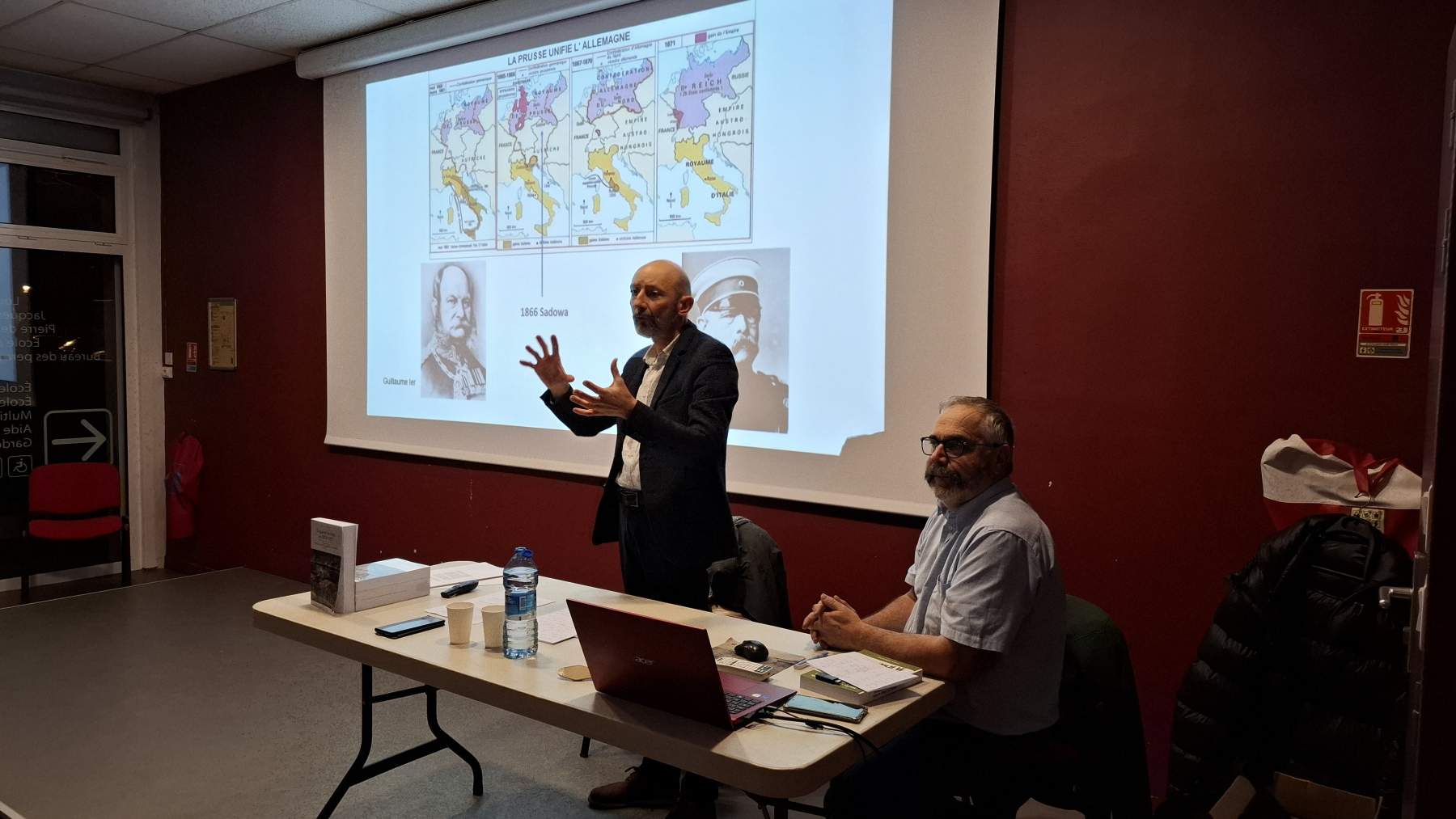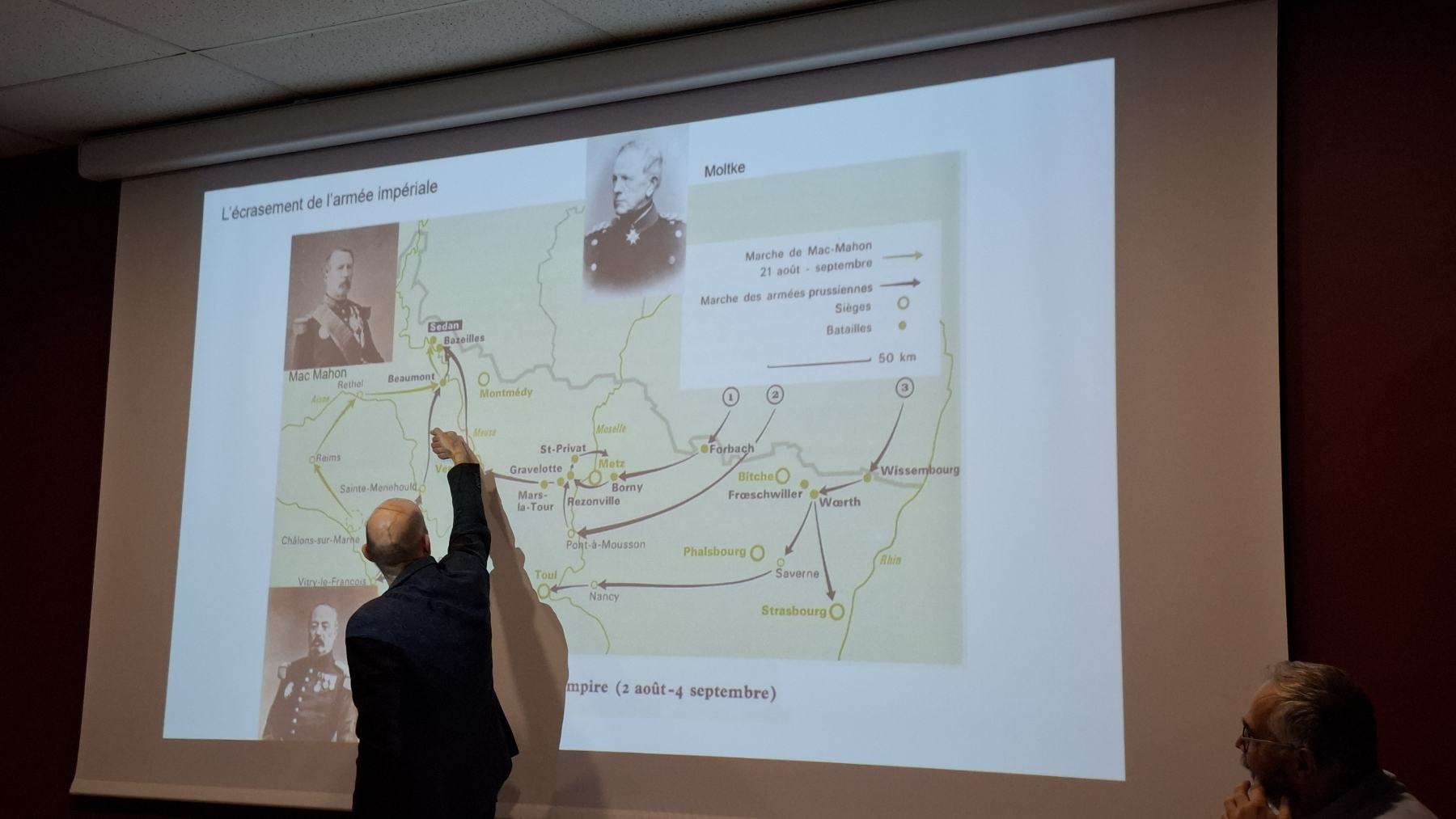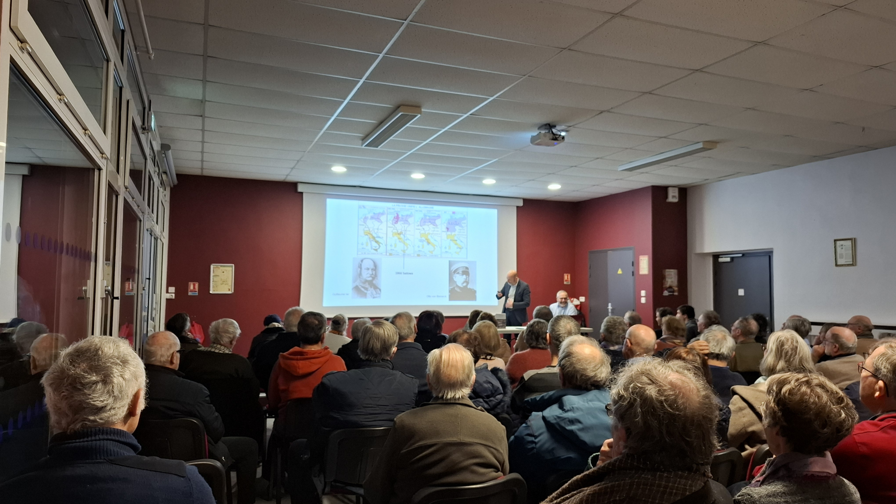 Nous savons combien la commune est attachée à la commémoration chaque année de ces combats qui eurent lieu sur son territoire. Le succès de cette conférence le montre encore et c’est salle comble que le public a tenu jusqu’à 20h30 manifestant son intérêt par un échange de questions. La présentation du contexte socio-politique du moment a permis à chacun de comprendre les enjeux du conflit, son déroulement et les lourdes pertes en hommes consécutives à une impréparation.