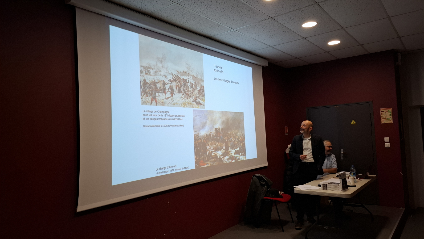 Cette conférence était donnée par Stéphane TISON, enseignant chercheur à l’université du Mans et particulièrement connaisseur de cette période de notre histoire. Il nous a fait l’honneur d’accepter l’animation de cette conférence. Qu’il en soit remercié.